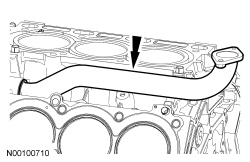 NOTICE: During engine repair procedures, cleanliness is extremely important. Any foreign material, including any material created while cleaning gasket surfaces that enters the oil passages, coolant passages or the oil pan, may cause engine failure.