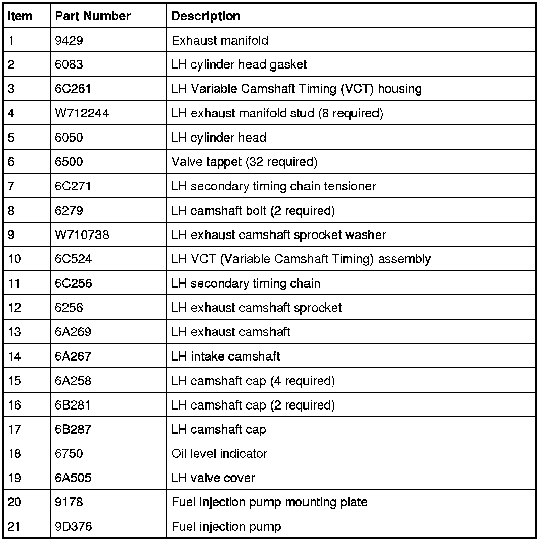 61. Assemble the LH VCT (Variable Camshaft Timing) assembly, the LH exhaust camshaft sprocket and the LH secondary timing chain.