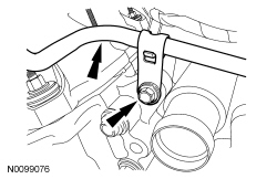 140. Install the LH turbocharger coolant tube bracket-to-cylinder head nut.