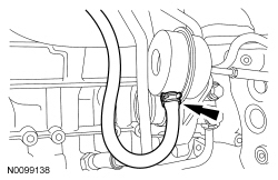 133. NOTE: Make sure the turbocharger wastegate regulating valve hose does not contact the exhaust manifold heat shield.
