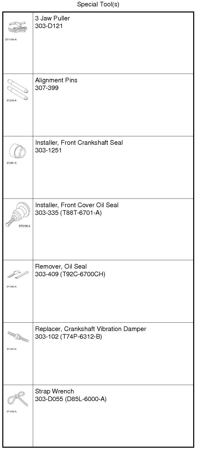 1. Tighten the bolts one turn at a time in a crisscross pattern until the engine front cover-to-cylinder block seal is released.