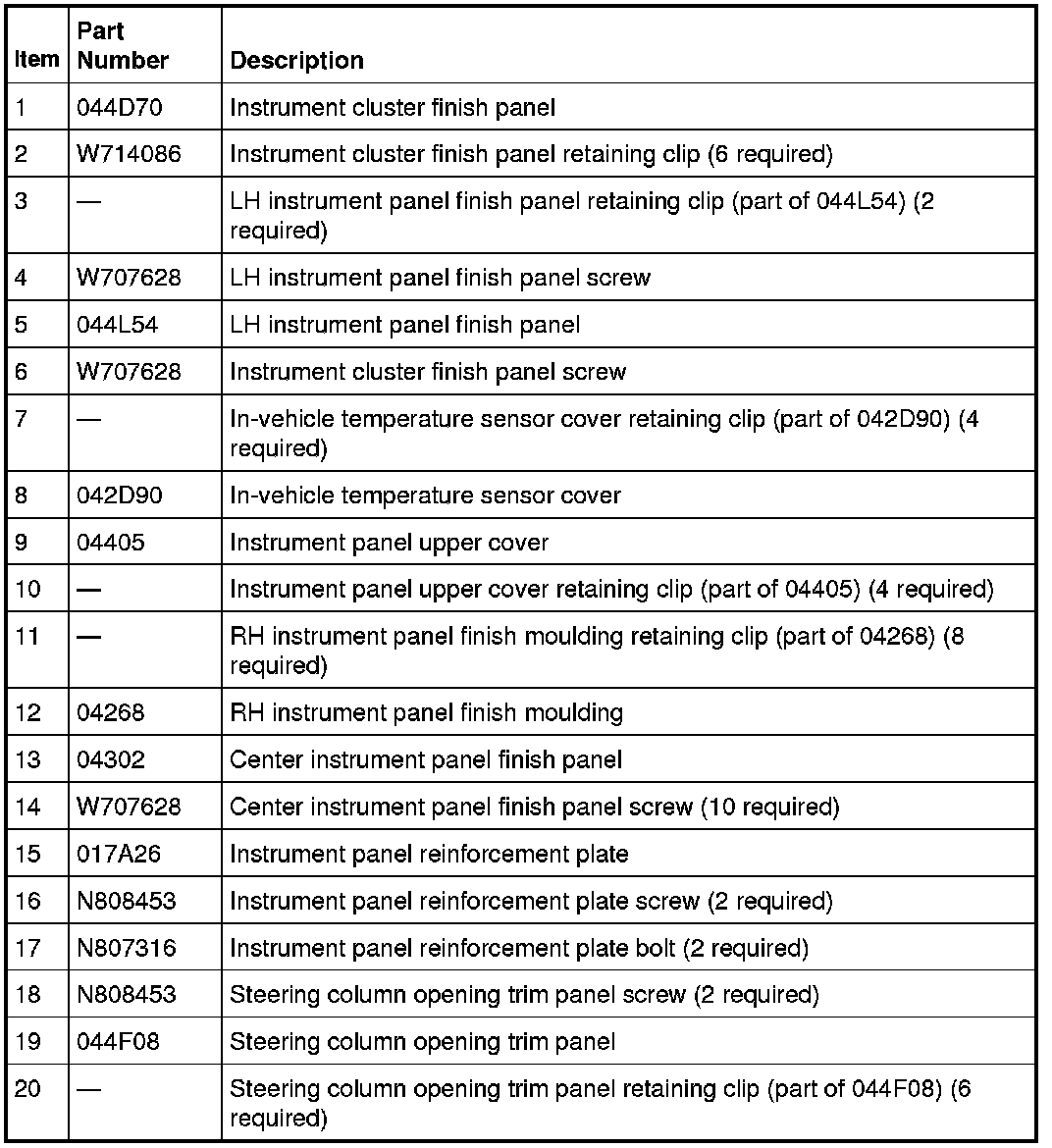 Instrument Panel - Exploded View