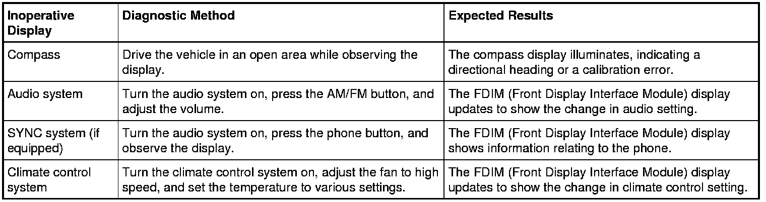 - Observe the inoperative FDIM (Front Display Interface Module) display while carrying out the indicated diagnostic method as follows: