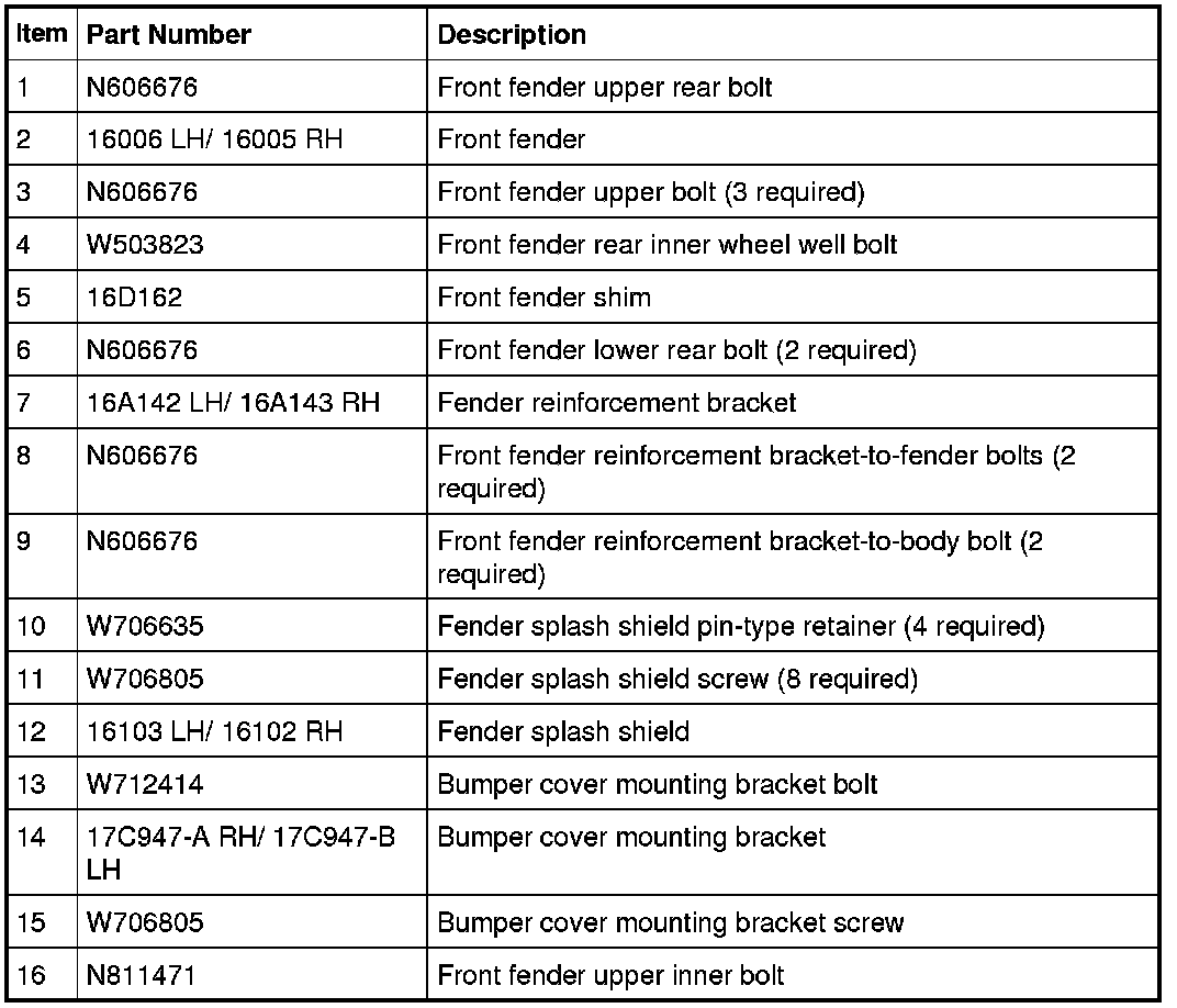 Front End Body Panels - Exploded View