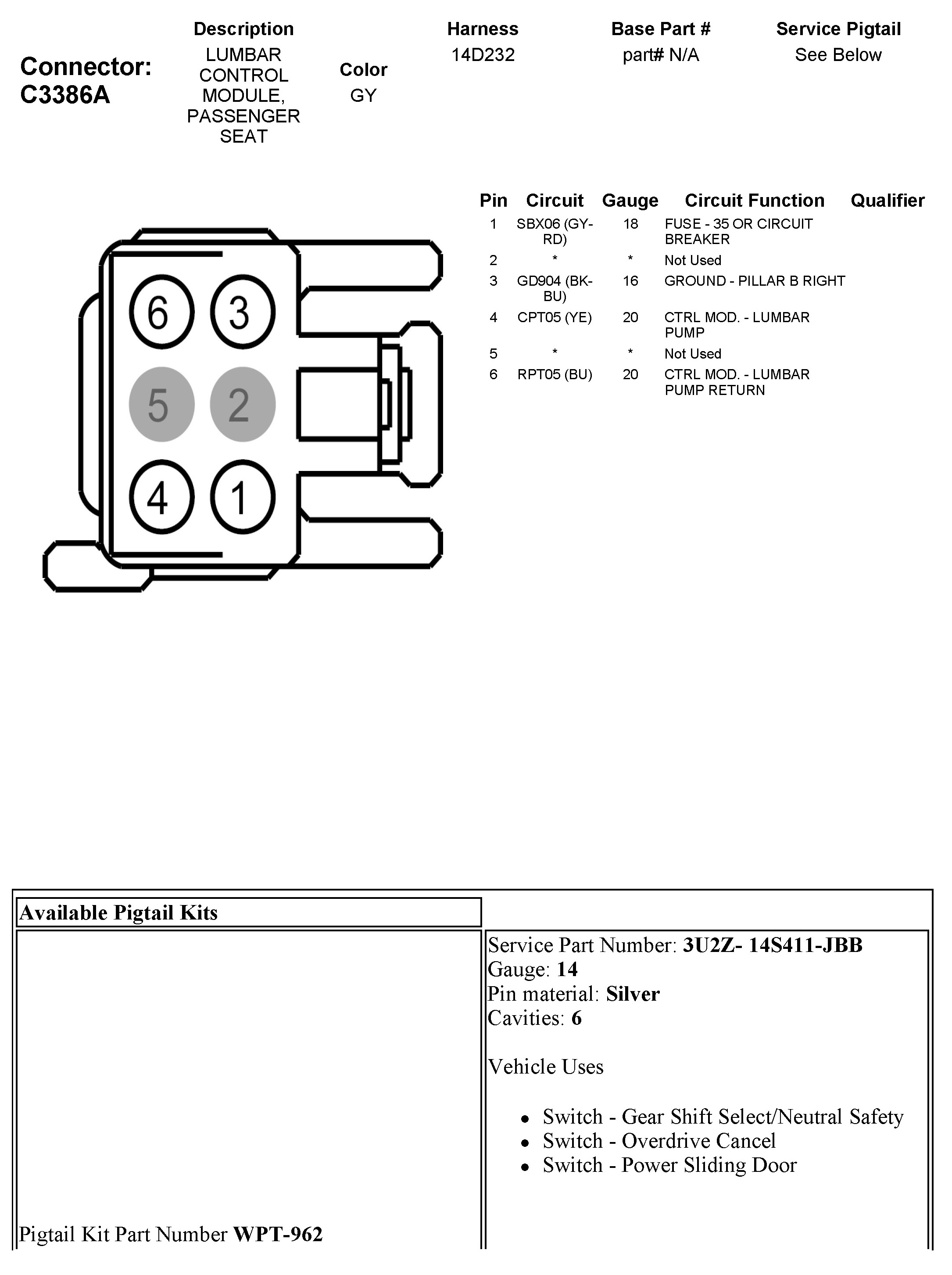 C3386A Lumbar Control Module, Passenger Seat