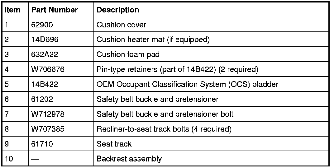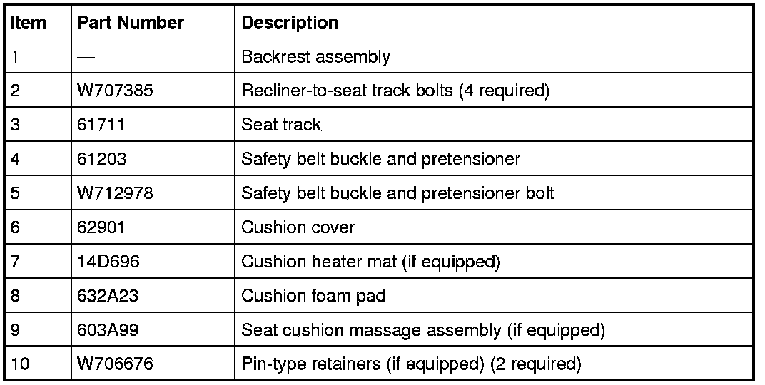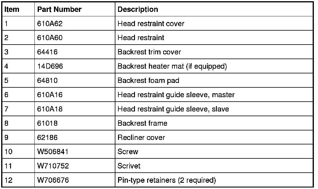 1. Remove the seat backrest. For additional information, refer to Seat Backrest- Front .