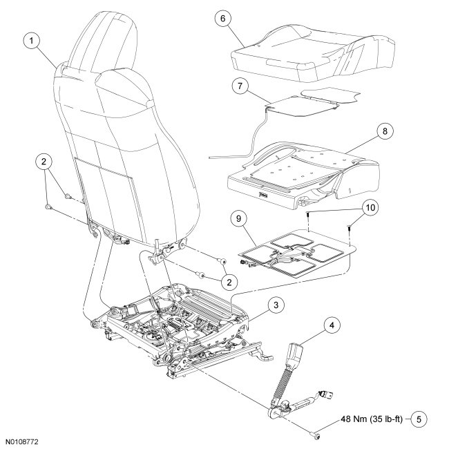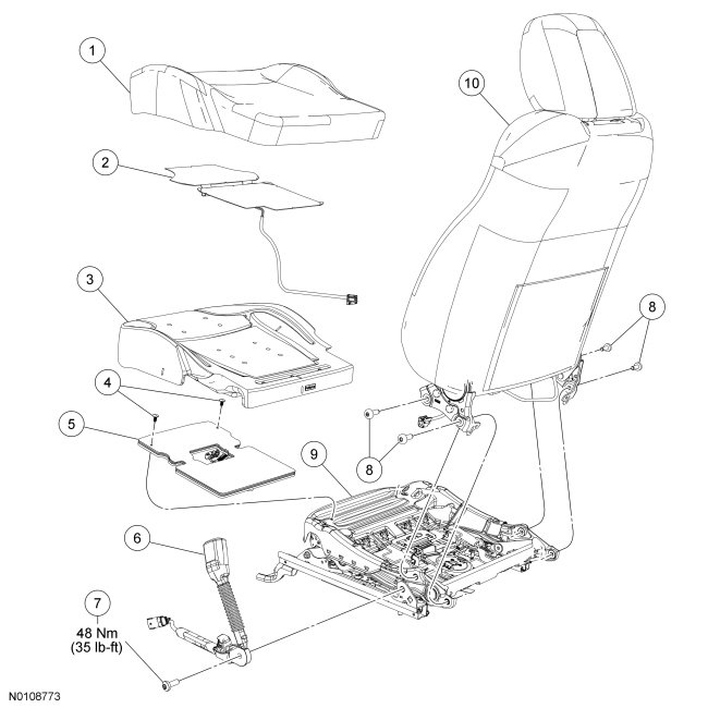 NOTE: Refer to Seat Backrest - Front for recliner-to-seat track bolt tightening sequence and torque specification.
