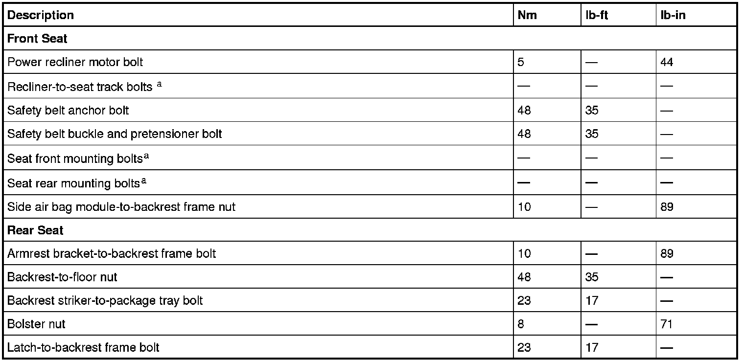 Seats: Specifications