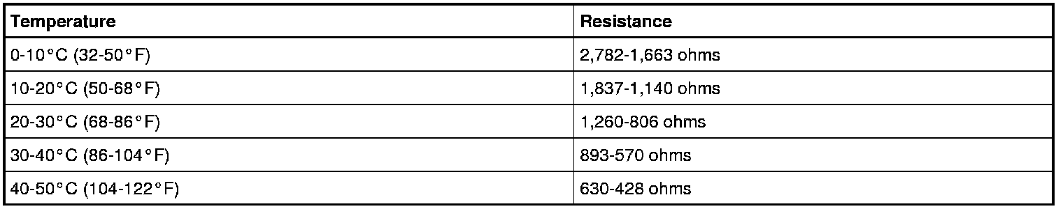 - Measure the resistance between passenger seat cushion TED (Thermo-Electric Device) C3040 pin 5 and pin 8, component side. Note the ambient temperature and refer to the following table.
