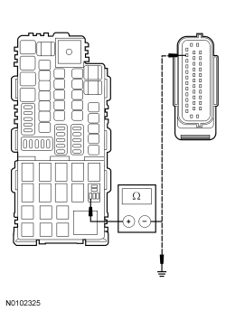 - Measure the resistance between adaptive cruise (stoplamps) relay, pin 1 BJB (Battery Junction Box) face side and ABS module C135-36, circuit CCA28 (GY/BN), harness side; and between the adaptive cruise (stoplamps) relay, pin 1, BJB (Battery Junction Box) face side and ground.