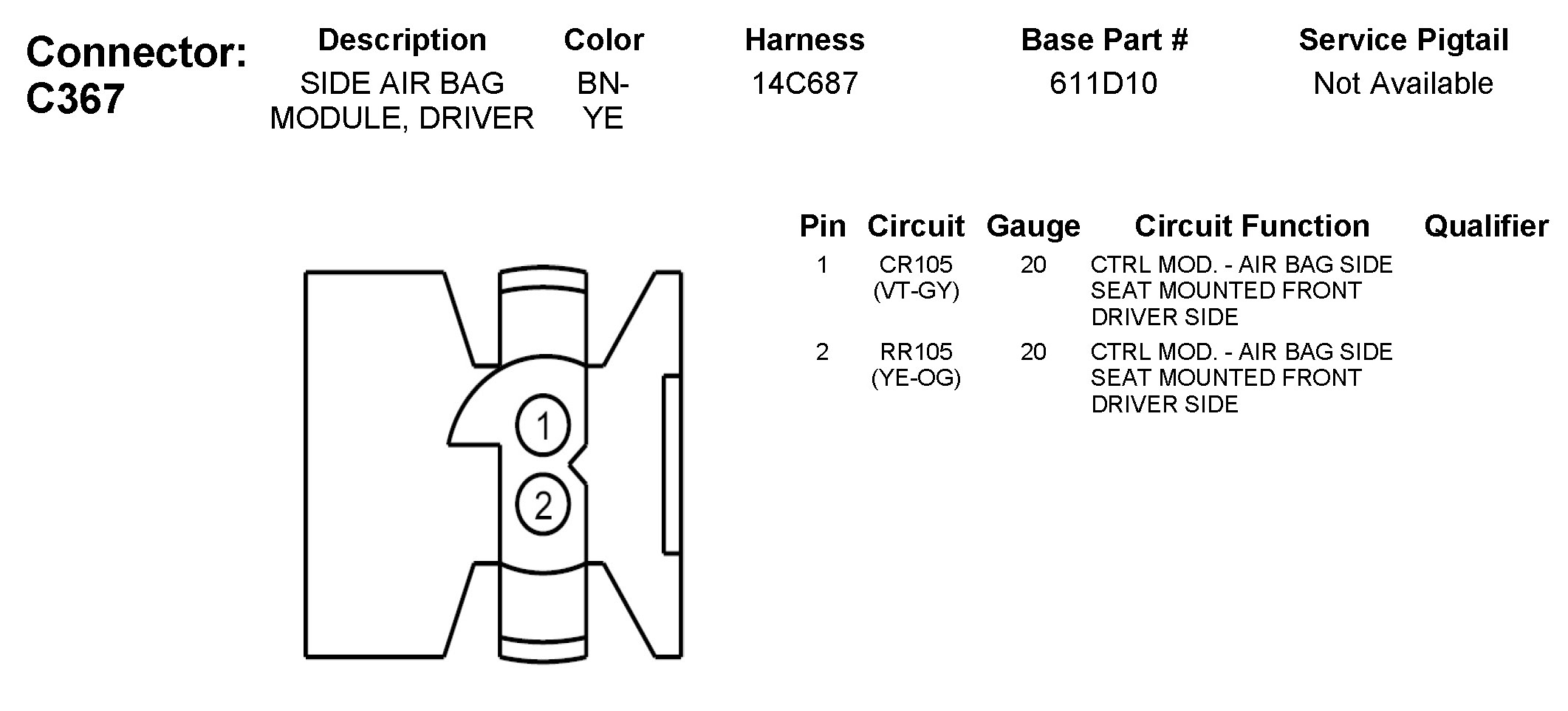 C367 Side Air Bag Module, Driver
