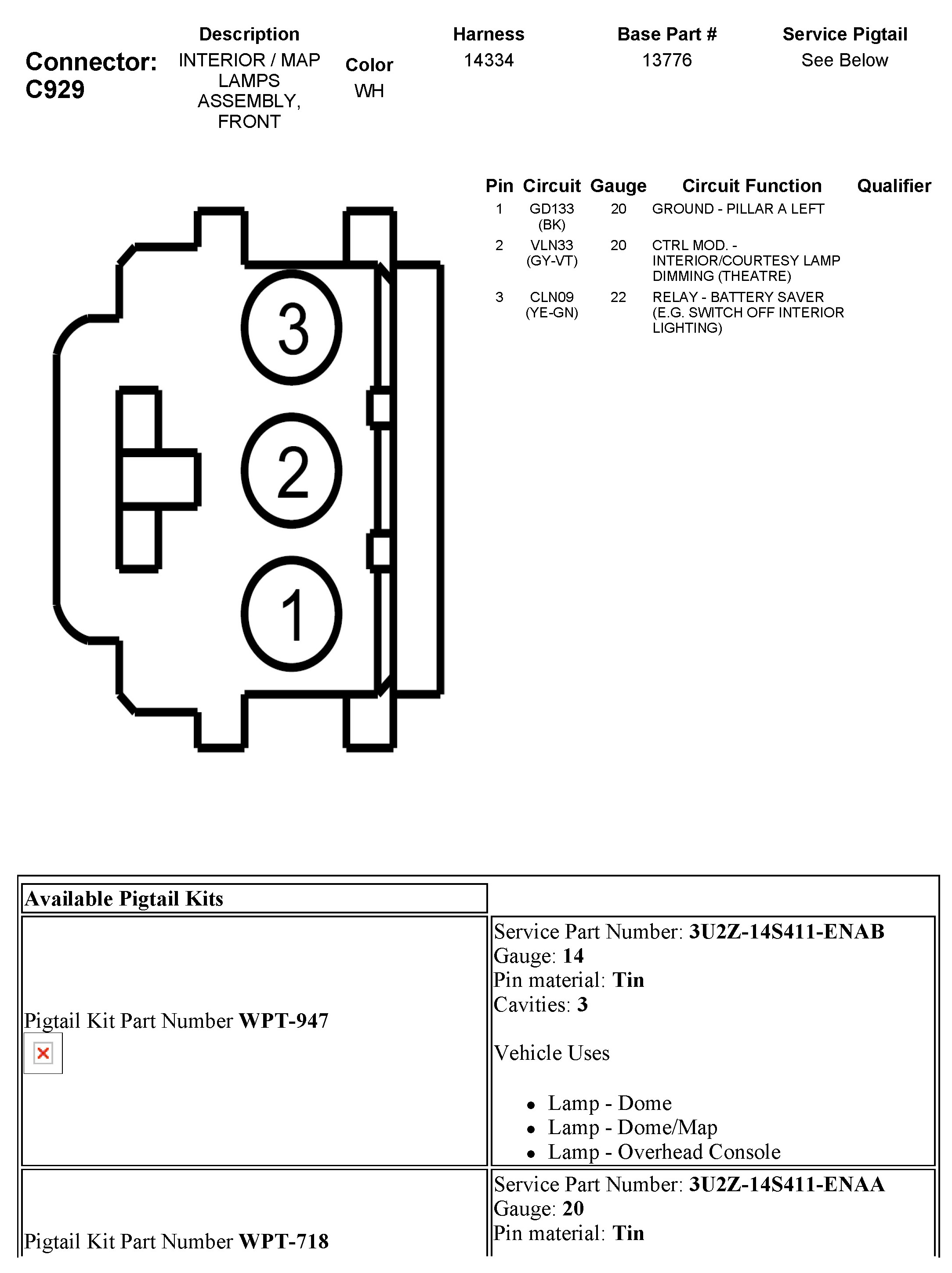 C929 Interior/Map Lamps Assembly, Front