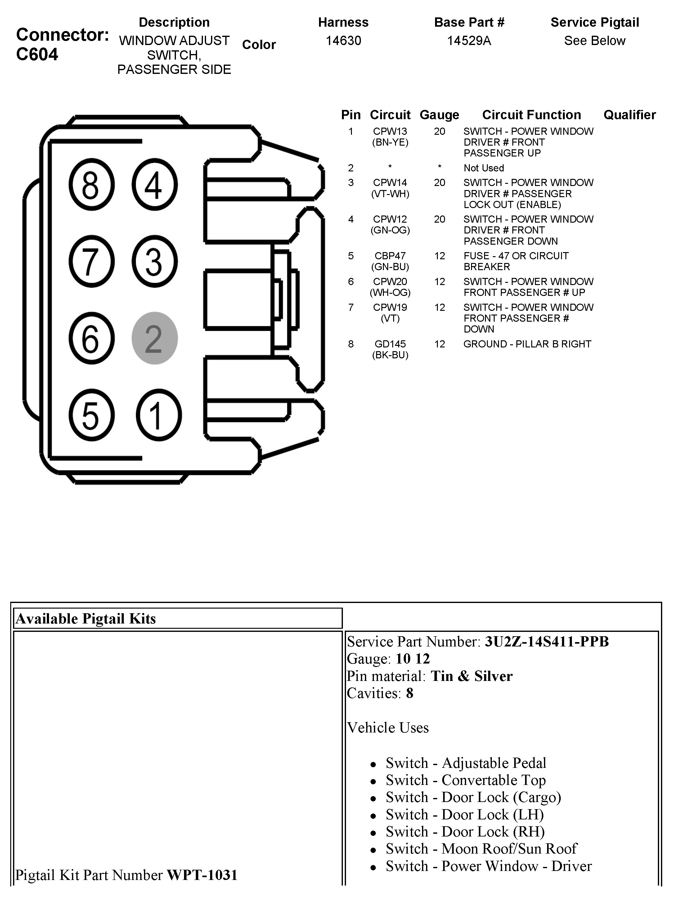 C604 Window Adjust Switch, Passenger Side