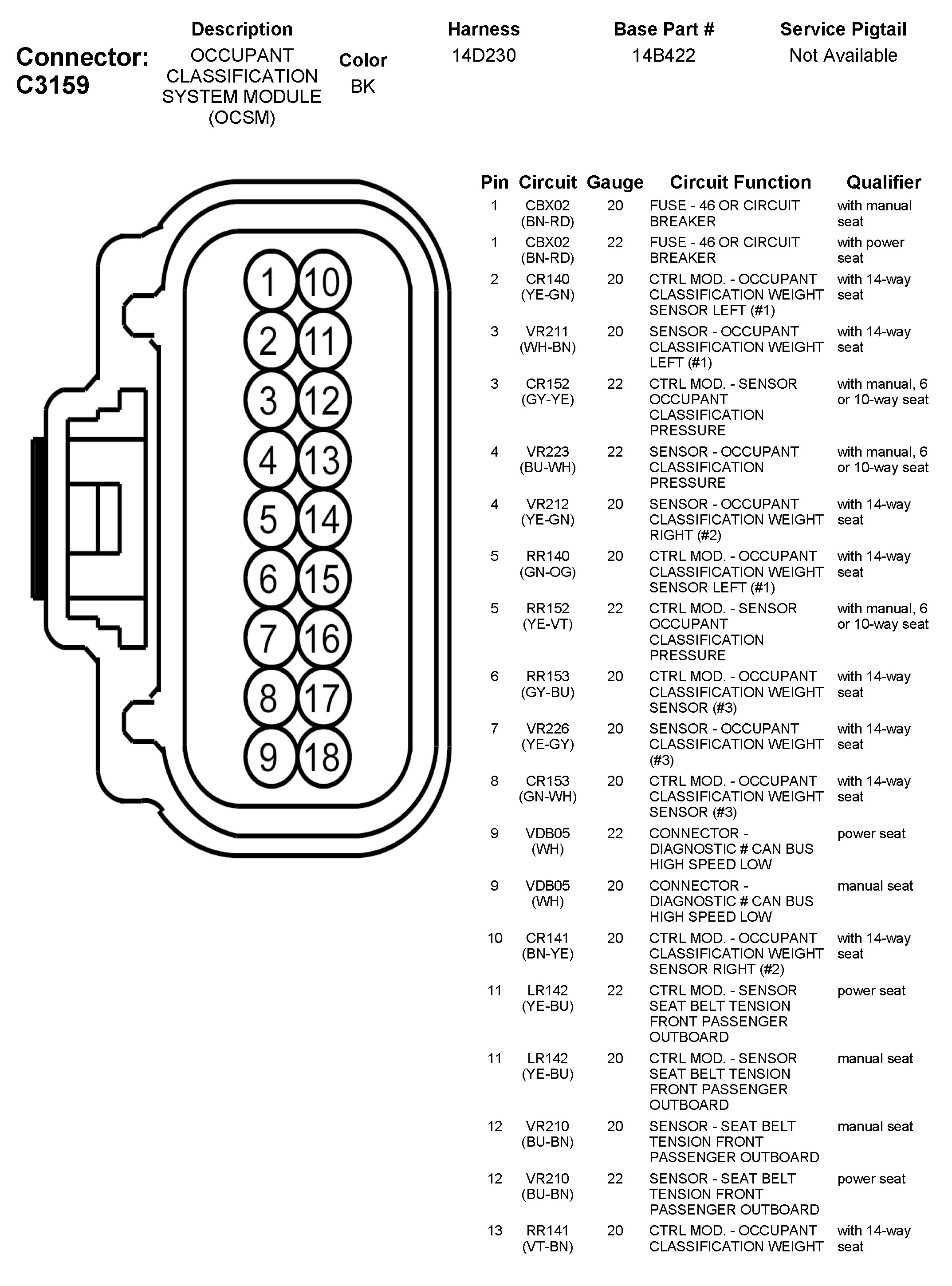 Seat Occupant Classification Module - Air Bag