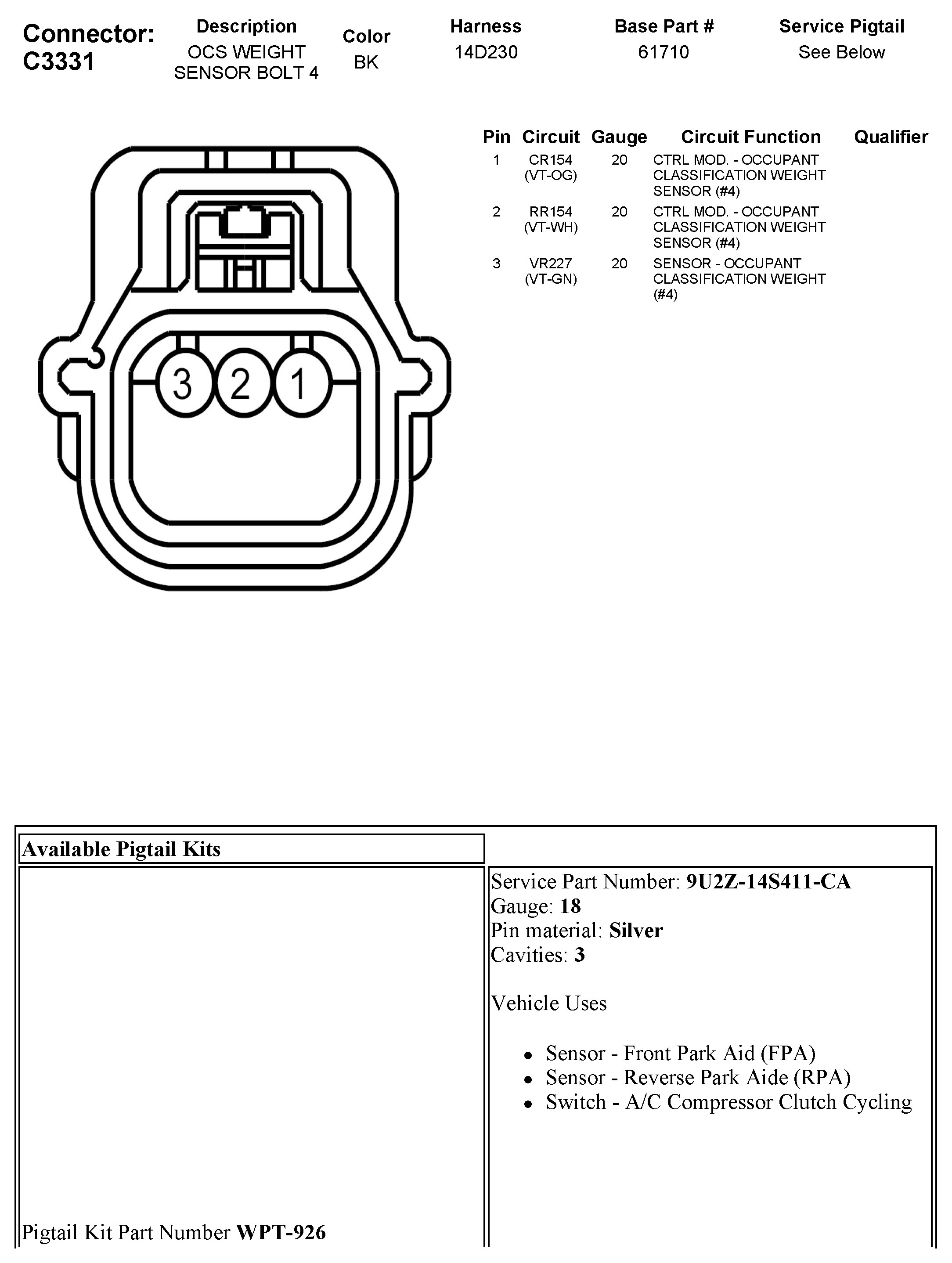 C3331 OCS Weight Sensor Bolt 4