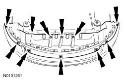 6. Install the front splash shield, 3 pin-type retainers and the 7 bolts when the cooling system or engine service is finished.
