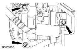 44. Remove the 3 bolts and the accessory drive belt tensioner.