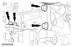 - Tighten the 2 engine roll restrictor through bolts to 103 Nm (76 lb-ft).