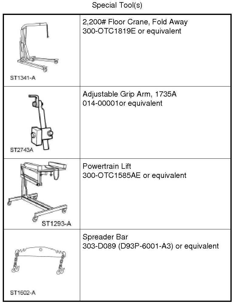 4. Using the Floor Crane and Spreader Bar, position the engine and transaxle onto the Powertrain Lift table.