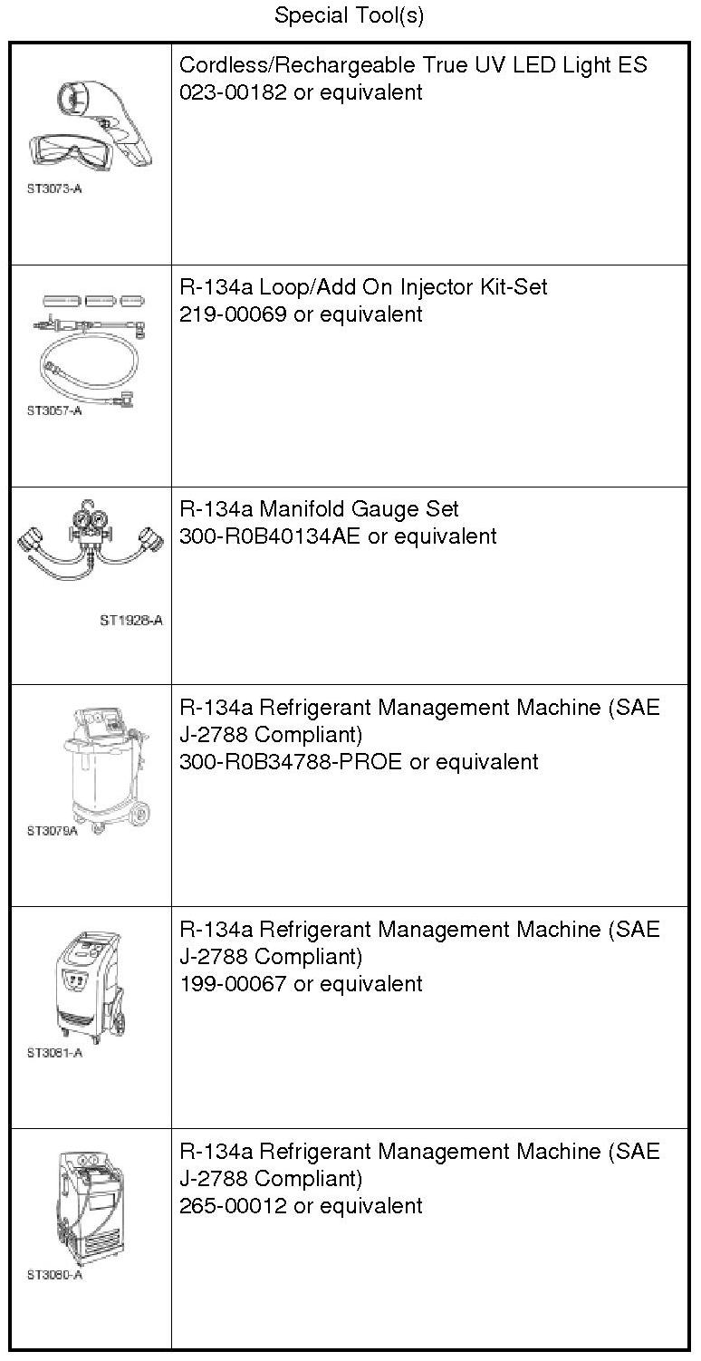 1. NOTE: If no R-134a pressure is present in the refrigerant system, the system should be evacuated before carrying out the injection procedure. For additional information, refer to Air Conditioning (A/C) System Recovery, Evacuation and Charging Air Conditioning (A/C) System Recovery, Evacuation and Charging.