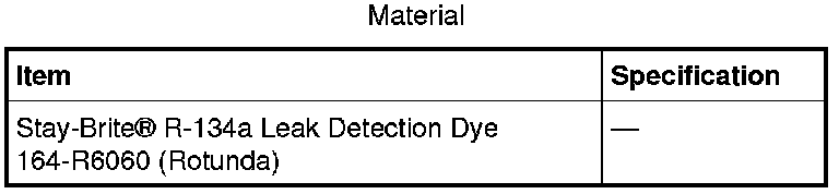 NOTE: Fluorescent refrigerant system dye is added to the refrigerant system at the factory to assist in refrigerant system leak diagnosis using a Rotunda-approved UV blacklight. It is not necessary to add additional dye to the refrigerant system before diagnosing leaks, even if a significant amount of refrigerant has been removed from the system. Replacement suction accumulators and receiver/driers are shipped with a fluorescent dye "wafer" included in the desiccant bag which will dissolve after approximately 30 minutes of continued A/C operation. It is not necessary to add dye after flushing or filtering the refrigerant system because a new suction accumulator or receiver/drier is installed as part of the flushing or filtering procedure. Additional refrigerant system dye should only be added if more than 50% of the refrigerant system lubricant capacity has been lost due to a fitting separation, hose rupture or other damage.