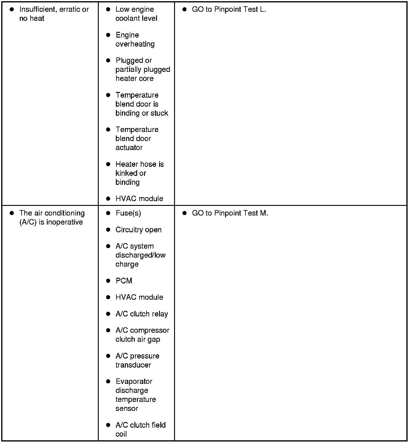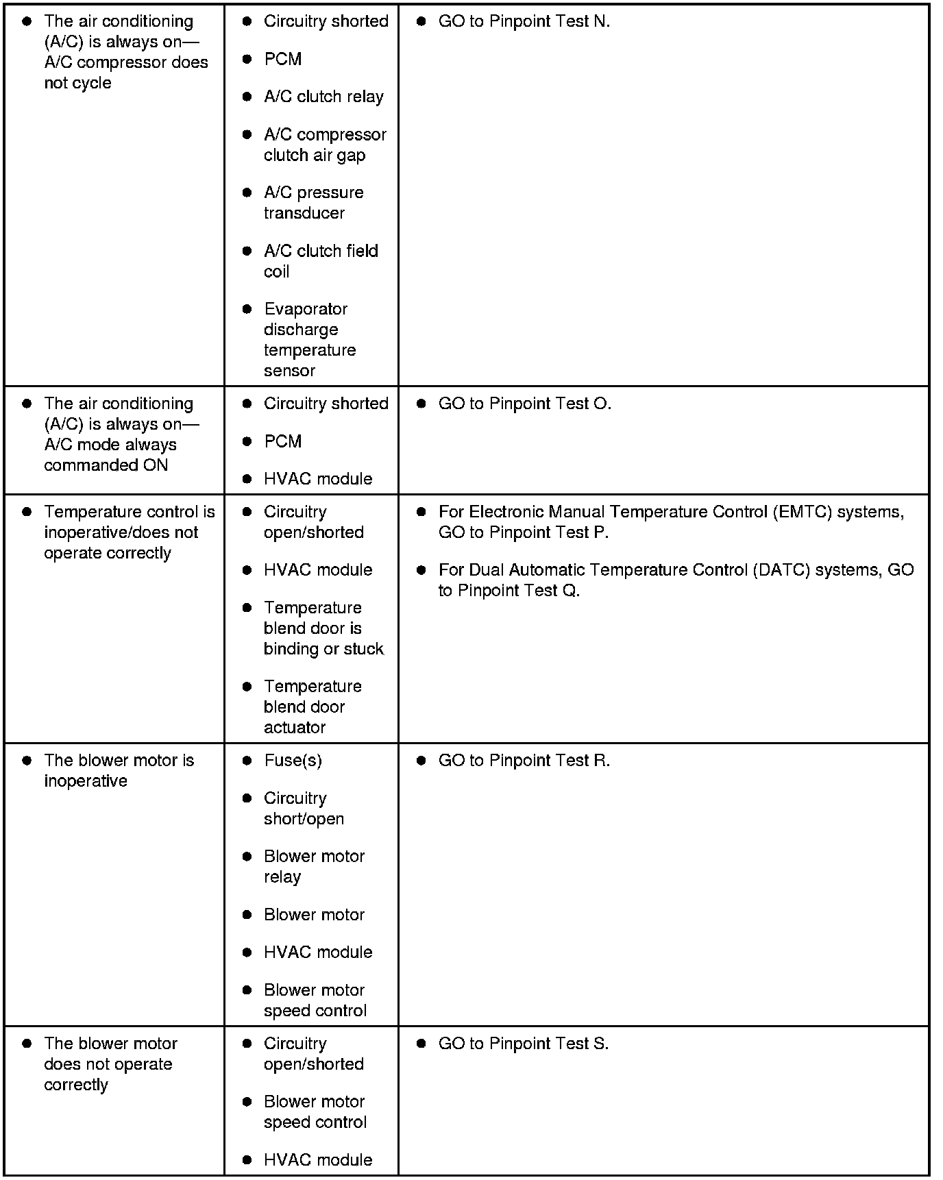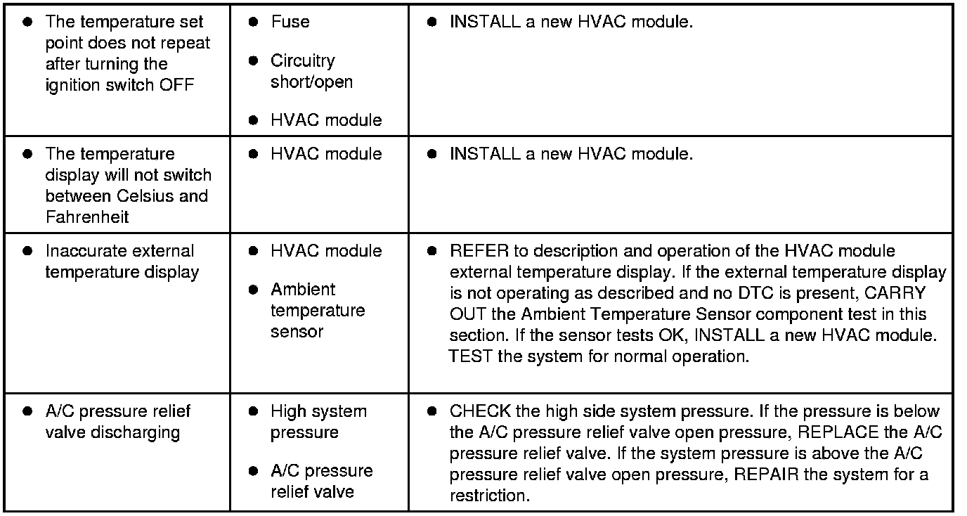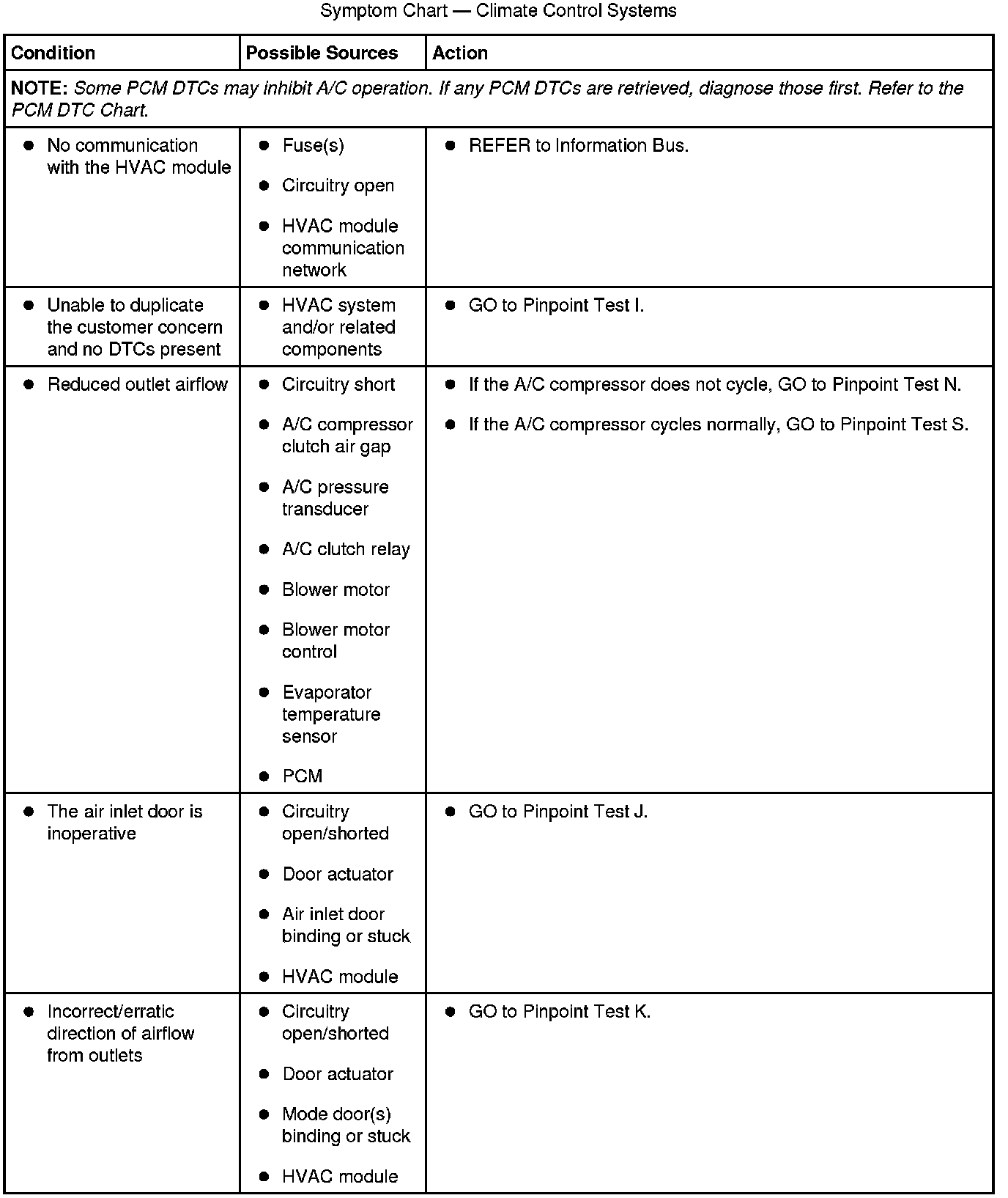 Symptom Chart - Climate Control Systems