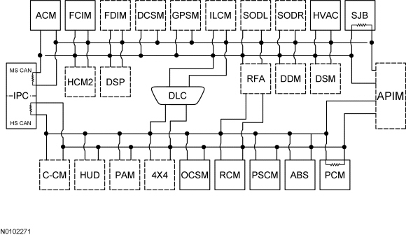 The Instrument Panel Cluster (IPC) is the gateway module, translating messages on the HS-CAN (High Speed Controller Area Network) to the MS-CAN (Medium Speed Controller Area Network) and vice versa. This allows a message to be distributed throughout both networks. The IPC (Instrument Panel Cluster) is the only module on this vehicle that has this ability.