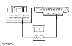 - Measure the resistance between the PAM (Parking Aid Module) C4014-3, circuit VDB04 (WH/BU), harness side and the DLC (Data Link Connector) C251-6, circuit VDB04 (WH/BU), harness side.