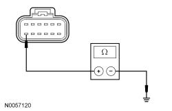 - Measure the resistance between the DCSM (Dual Climate Controlled Seat Module) C3265A-M, circuit GD903 (BK/WH), harness side and ground.