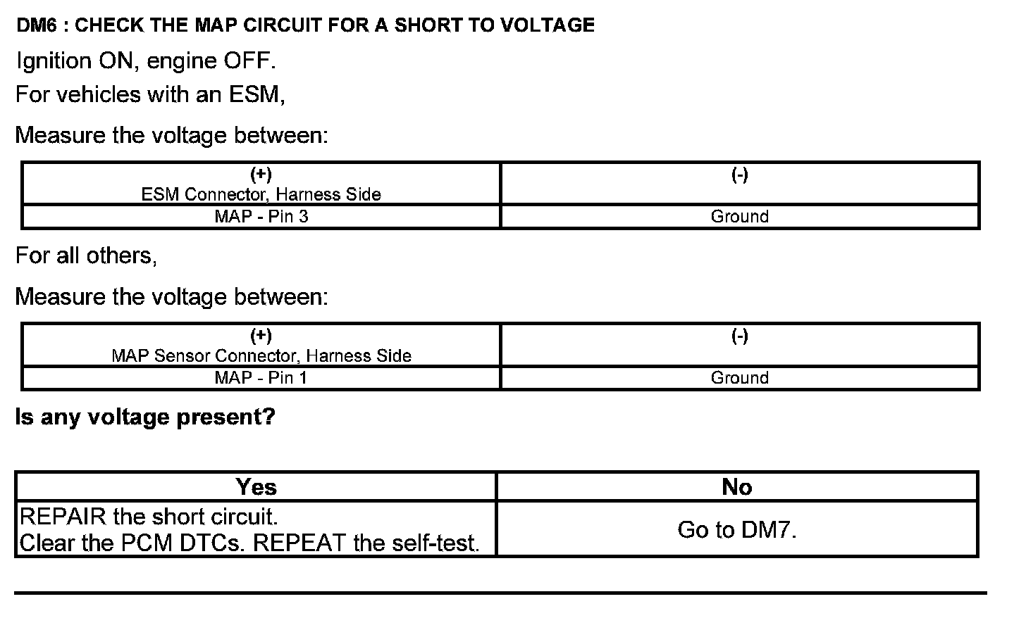 Test DM: Manifold Absolute Pressure (MAP) Sensor