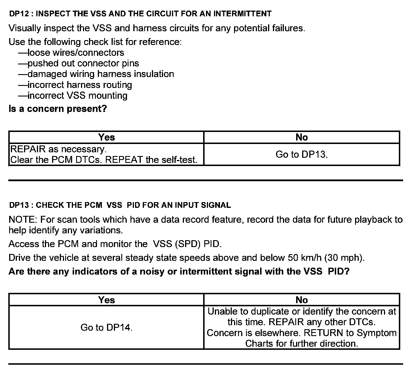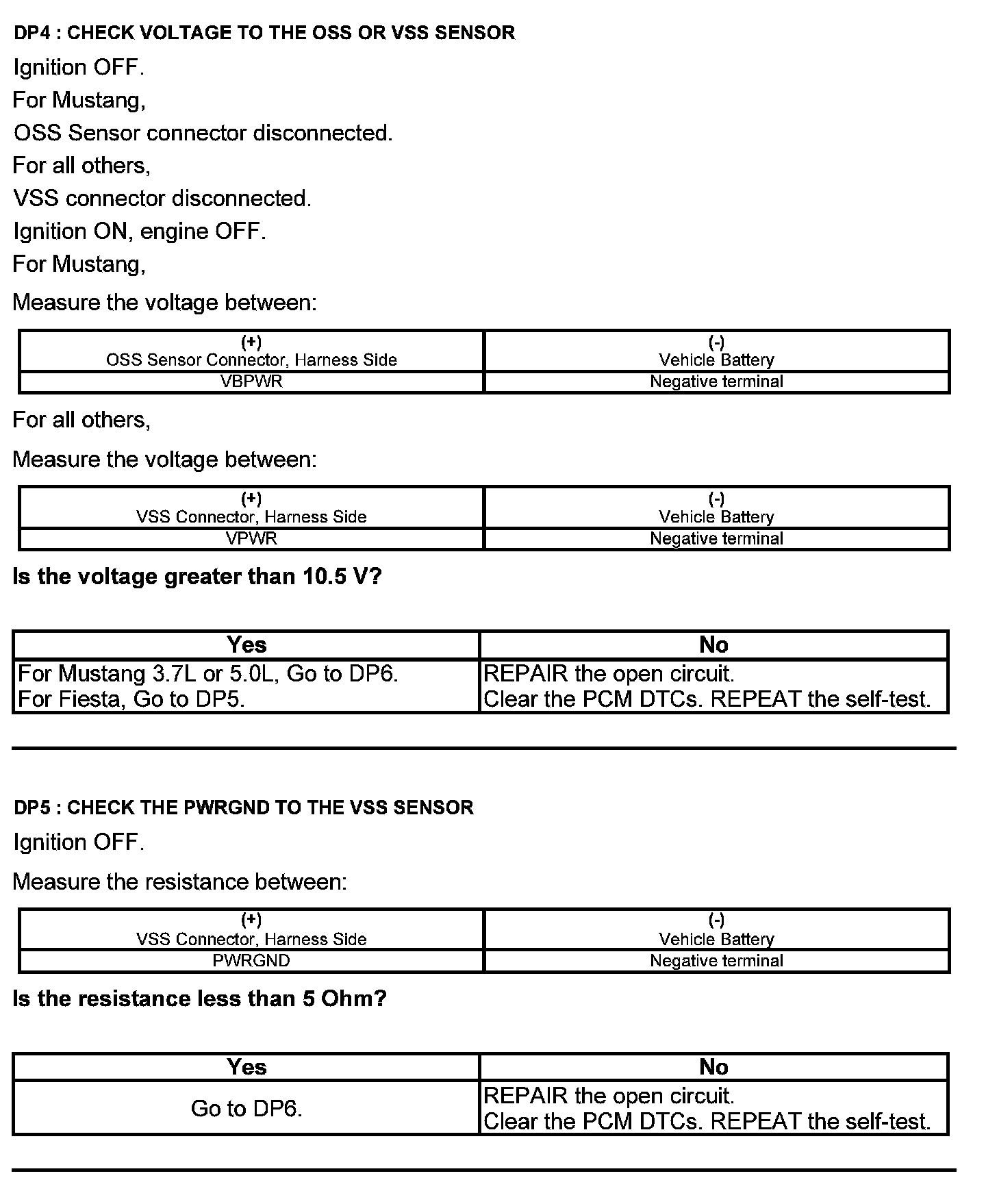 Test DP: Output Shaft Speed (OSS) Sensor/Vehicle Speed Sensor ( VSS)