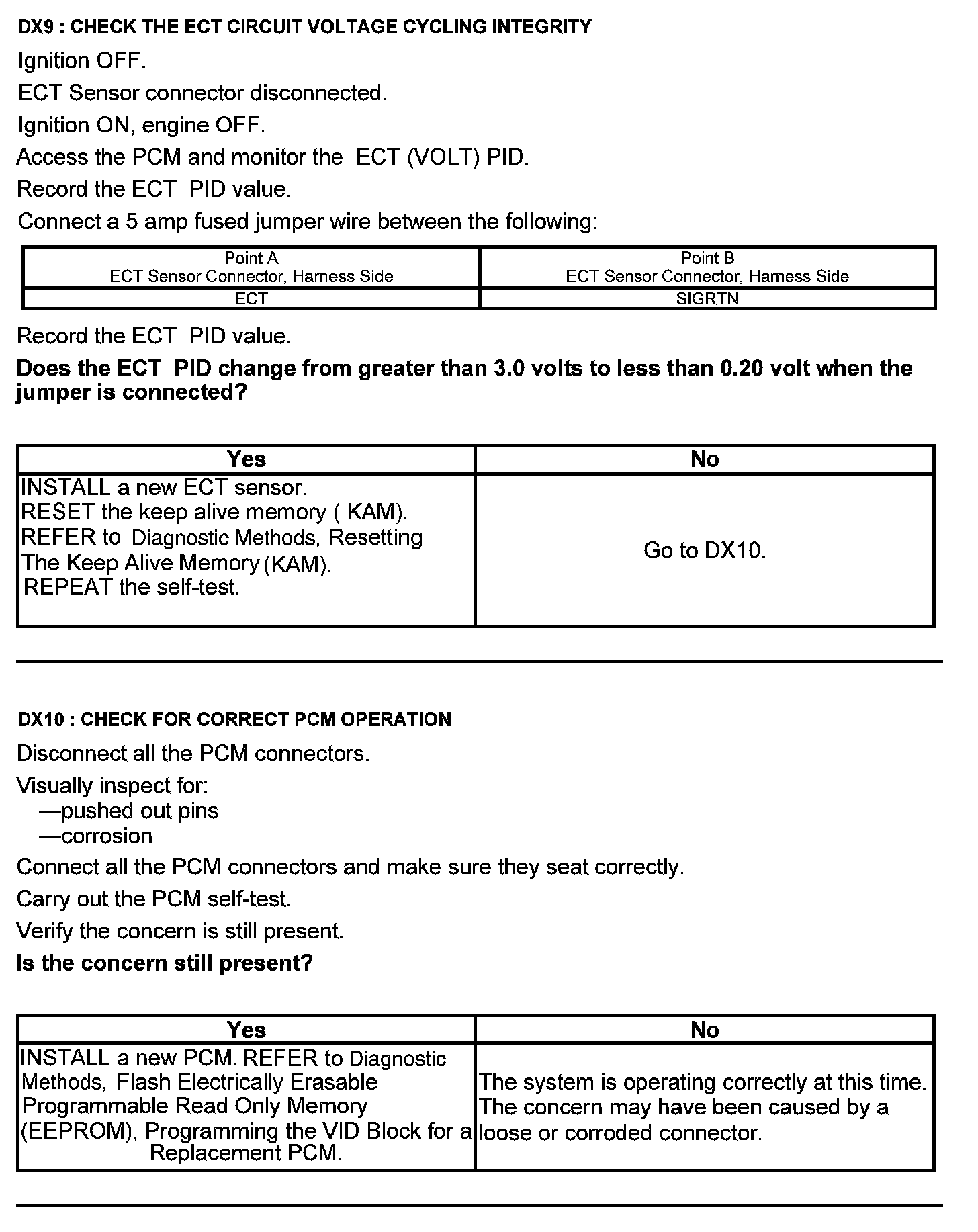 Test DX: Engine Coolant Temperature (ECT) Sensor
