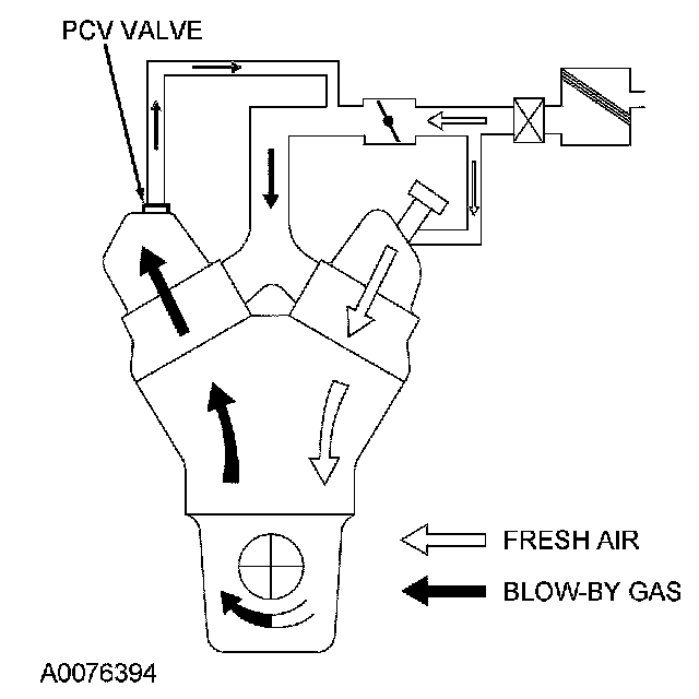The PCV system cycles crankcase gases back through the intake air system into the engine where they are burned. The PCV valve regulates the amount of ventilated air and blow-by gases to the intake manifold.