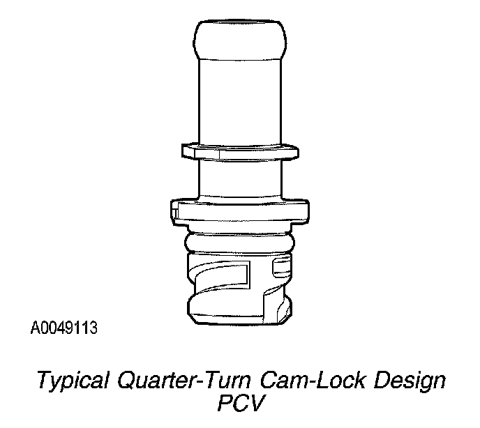 PCV systems that comply with on board diagnostics (OBD) PCV monitoring requirements use a quarter-turn cam-lock thread design at one end to prevent accidental disconnection from the valve cover. For more information about the PCV monitor refer to Positive Crankcase Ventilation (PCV) System Monitor.