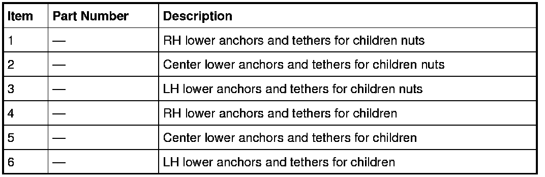 2. Remove the 2 nuts and the affected lower anchors and tethers for children.