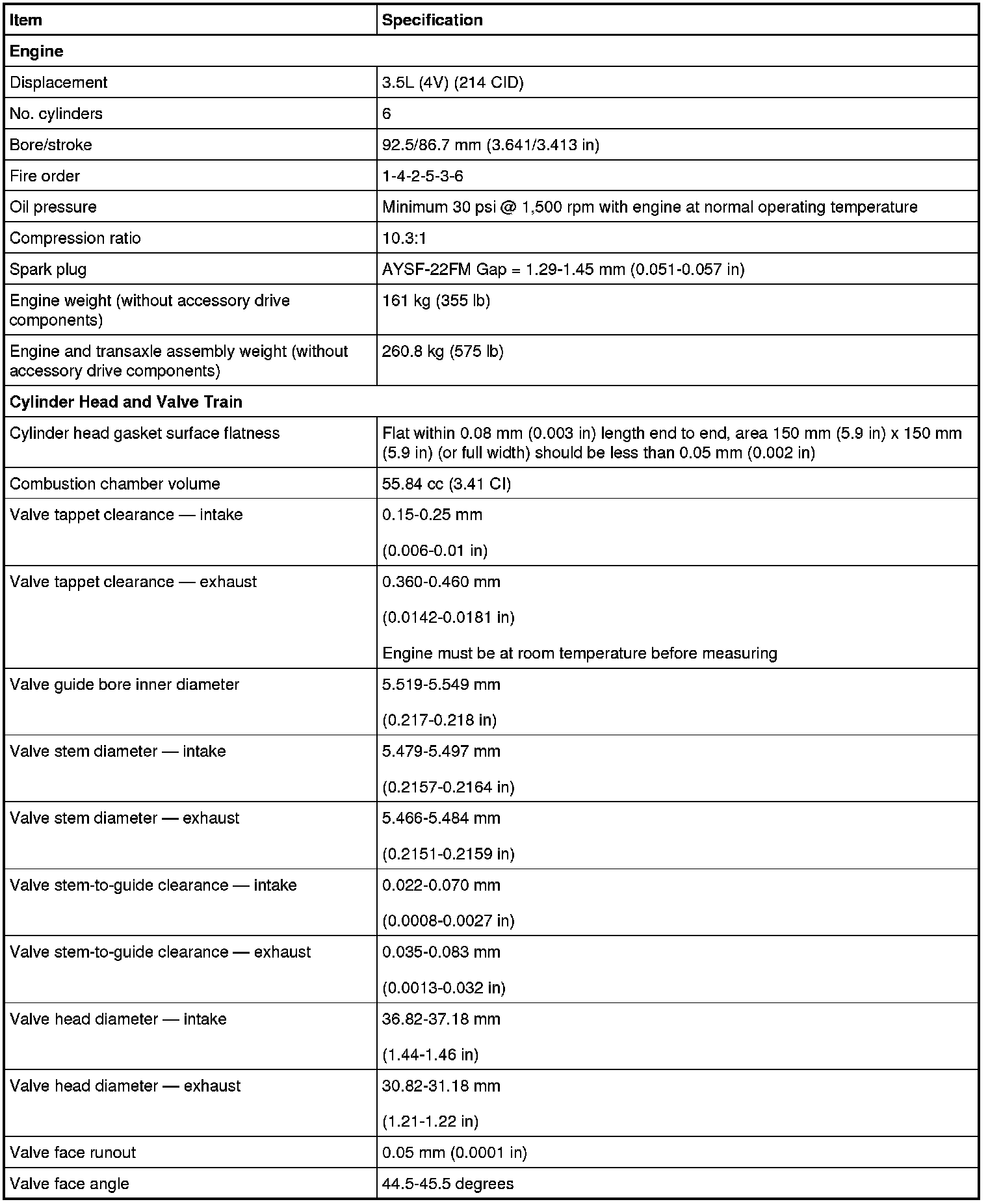 Intake Manifold Specifications