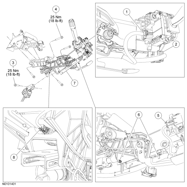 - To install, use a new steering column shaft-to-steering column bolt and tighten to 25 Nm (18 lb-ft).