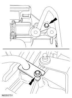 7. Remove and discard the 2 transmission fluid cooler tube bolts.