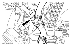 12. Install the secondary latches on the transmission fluid cooler tubes at the transmission fluid cooler thermal bypass valve.