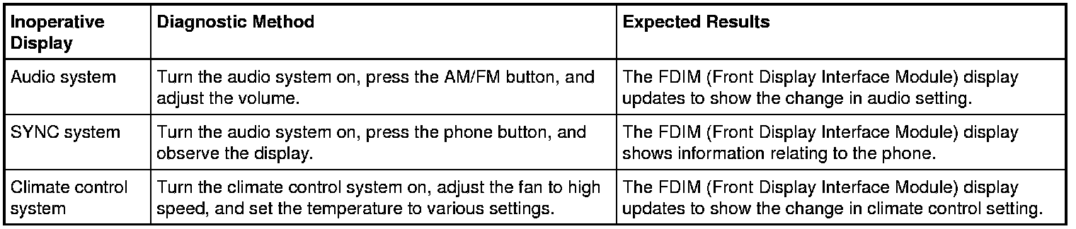- Observe the inoperative FDIM (Front Display Interface Module) display while carrying out the indicated diagnostic method as follows: