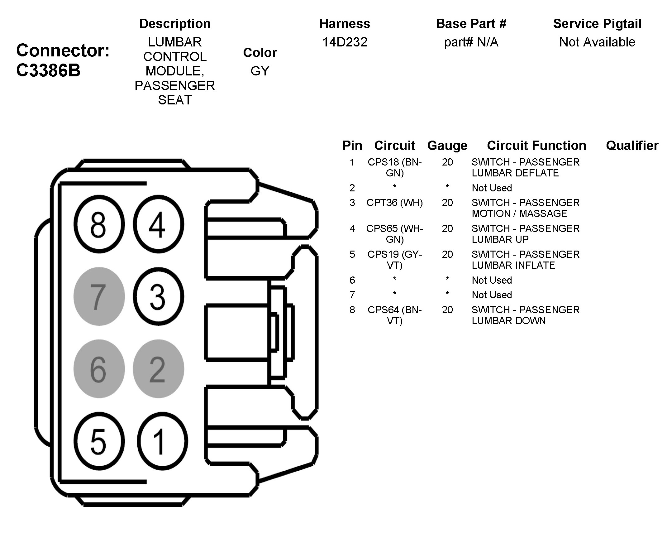 C3386B Lumbar Control Module, Passenger Seat