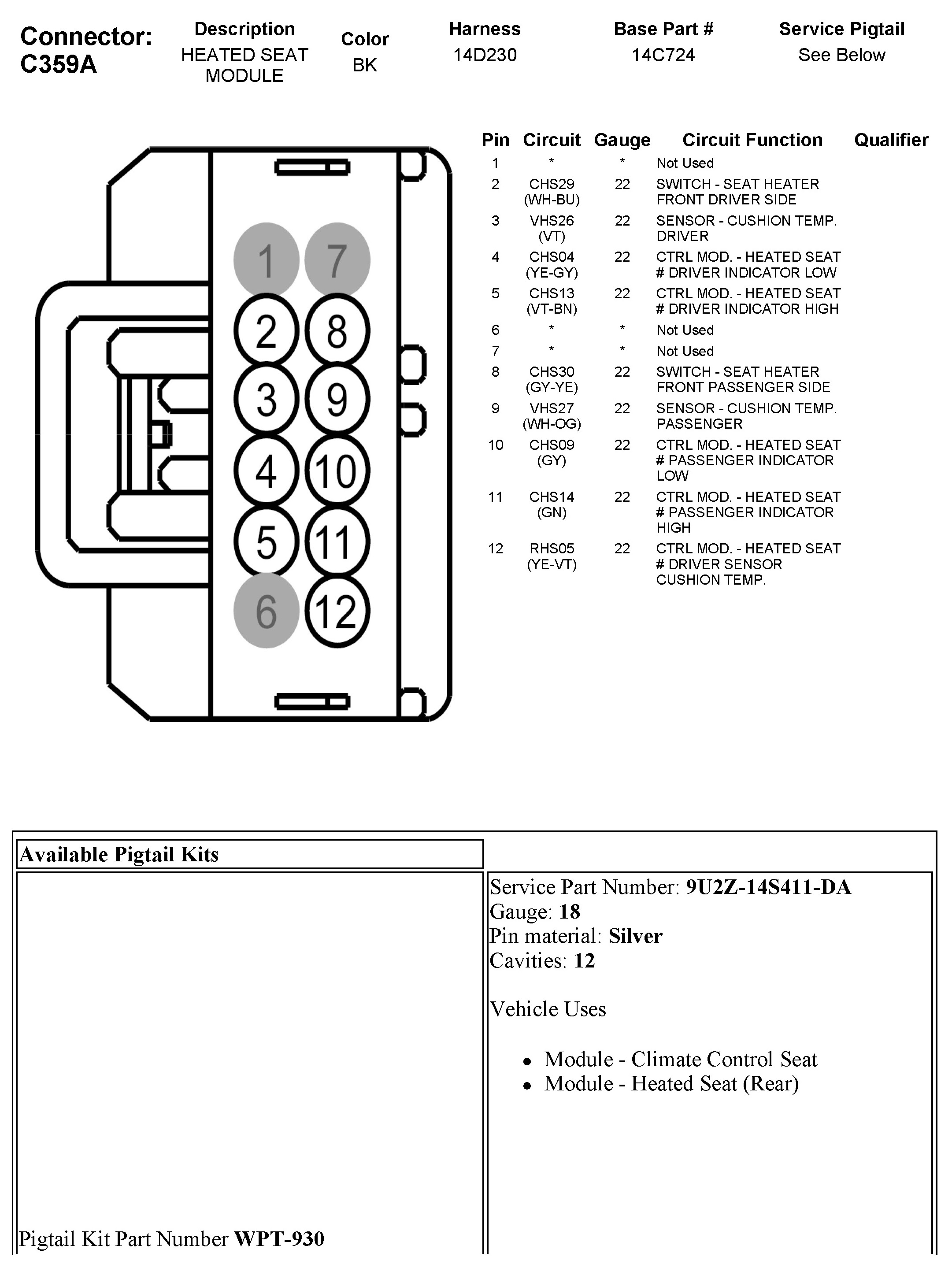 C359A Heated Seat Module
