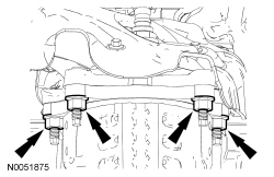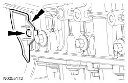- Install the 3 new upper LH catalytic converter manifold-to-cylinder head nuts and tighten to 25 Nm (18 lb-ft).