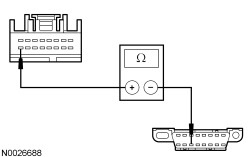 - Measure the resistance between the ACM (Audio Control Module) C240C-15, circuit VDB06 (GY/OG), harness side and the DLC (Data Link Connector) C251-3, circuit VDB06 (GY/OG), harness side.