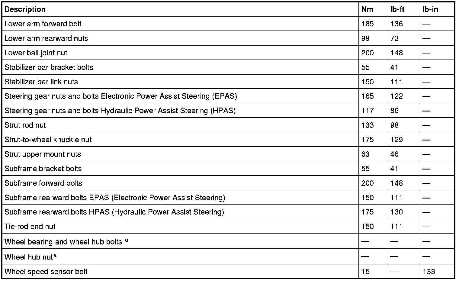 Torque Specifications