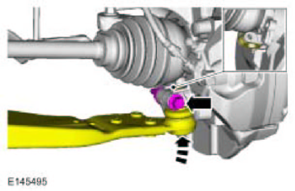 - Use care when releasing the lower arm and wheel knuckle into the resting position or damage to the ball joint seal may occur.