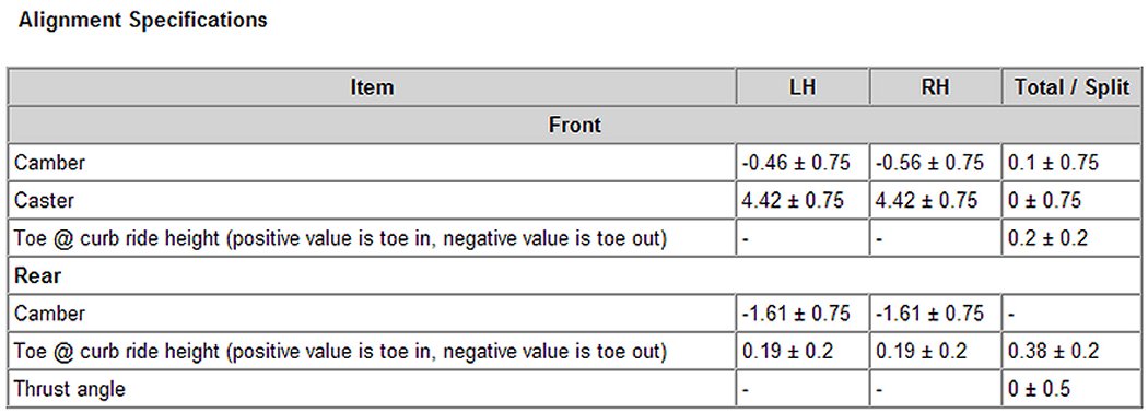 Alignment: Specifications