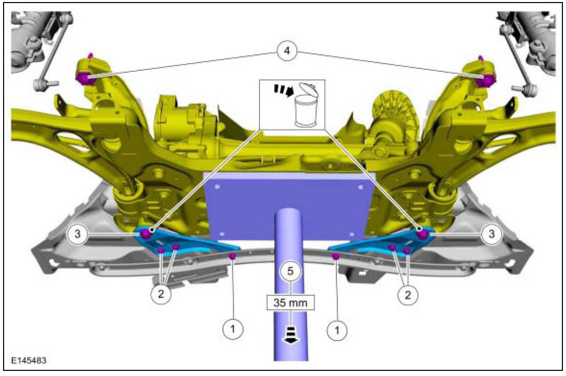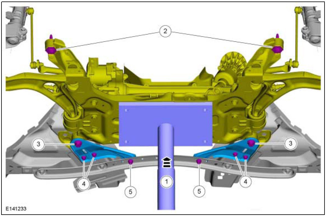 Special Tool(s): 502-002 (Alignment Pins, Subframe)