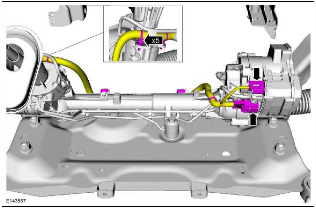 2. NOTICE: Disconnect the battery ground cable anytime the steering gear is being serviced or damage to the steering gear internal power relay may occur resulting in steering gear replacement.