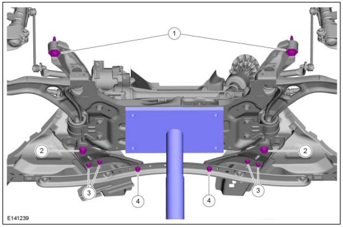 4. NOTE: While tightening the subframe bolts, make sure the front subframe does not move.